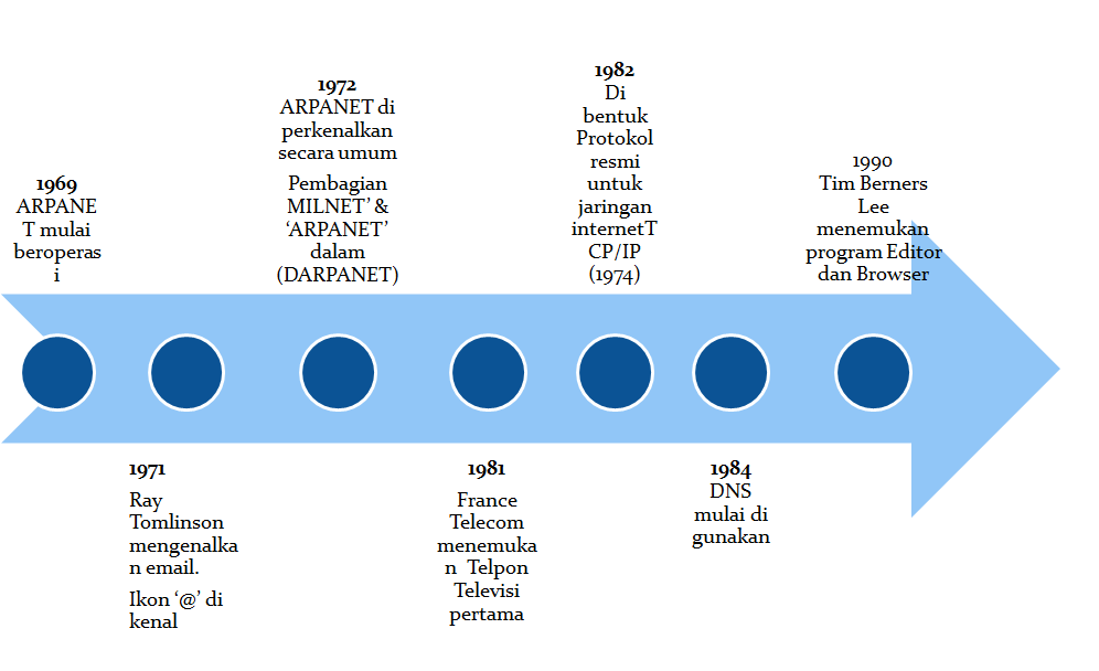 INTERNET adalah sebuah koleksi dari jaringan di seuluh dunia yang menghubungkan jutaan bisnis, INstansi Pemerintah. Institusi Pendidikan dan individu - individu. INTERNET merupakan jaringan komputer yang dibentuj oleh Departemen Pertahanan Amerika Serikat pada bulan September 1969, melalui proyek ARPA yang disebut ARPANET (Advanced Research Project Agency Network) yang mempunyai 2 tujuan :